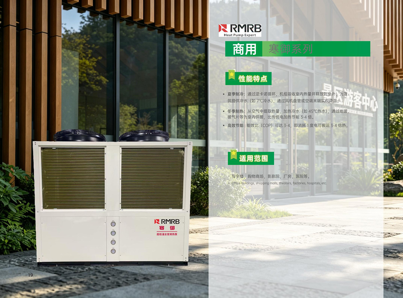 冬季制热:从空气中提取热量,加热冷水(如45℃℃热水),通过地暖、暖气片等为室内供暖,比传统电加热节能 了-4倍。