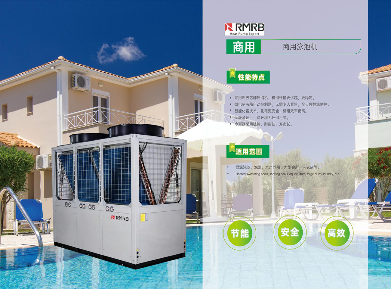 冷凝器采用钛管,耐腐蚀,寿命长。